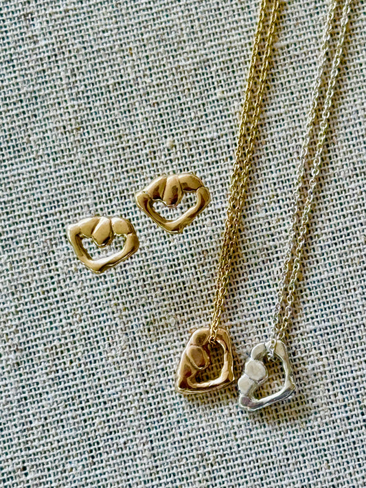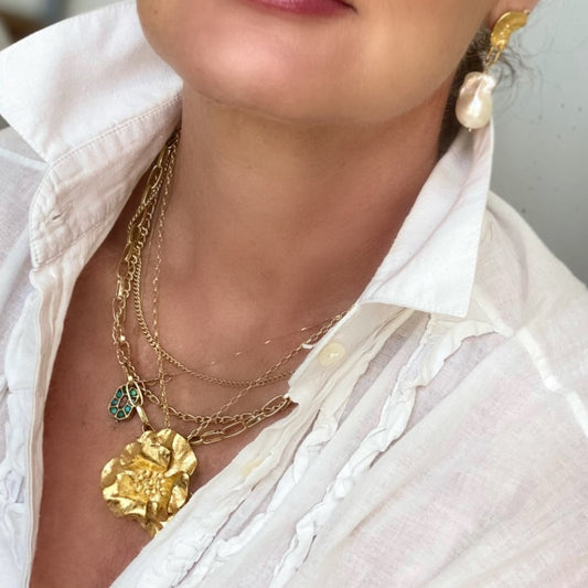 Discover our signature handcrafted jewelry, where elegance meets artistry. Featuring organic, hand-crafted discs and our unique symbol of love pendant, each piece is thoughtfully designed in 9K gold, sterling silver, or fine silver for a luxurious touch. The show-stopping single flower (adorned with 24K gold leaf) adds the perfect balance of delicacy and boldness—a must-have for any jewelry lover.