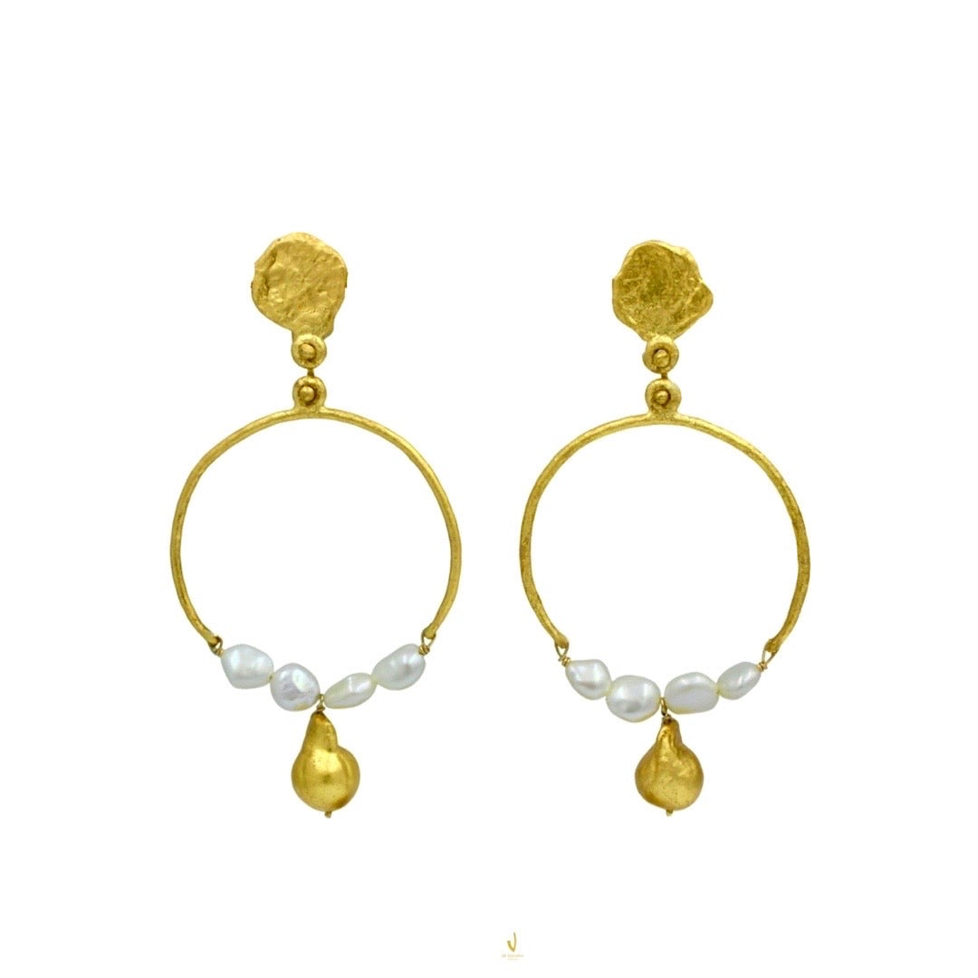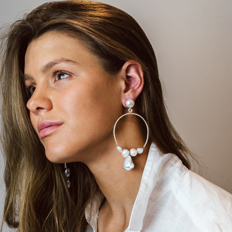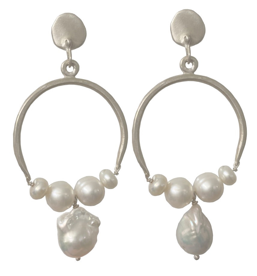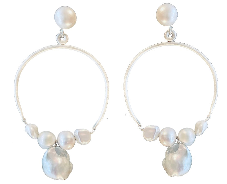 Medium hoop with 4 high lustre F/water baroque pearls and large Gold leaf coated baroque or high lustre Baroque pearl with silver stud.